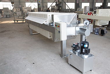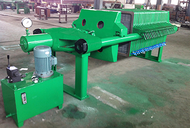 1. 壓緊壓濾機。 循環(huán)開始的步就是壓緊壓濾機。壓濾機的濾板是可移動的,通過油缸活塞桿的推動,壓濾機濾板逐一靠緊排列。油缸壓緊壓力由液壓系統(tǒng)提供和控制,在掉壓時可自動補壓(稱為自動保壓壓濾機),保證油缸的壓緊力。油缸壓緊力是壓濾機重要的參數指標,足夠的壓緊力是保證不漏料、不噴漿的前提,是壓濾機脫水性能的基礎。 ......